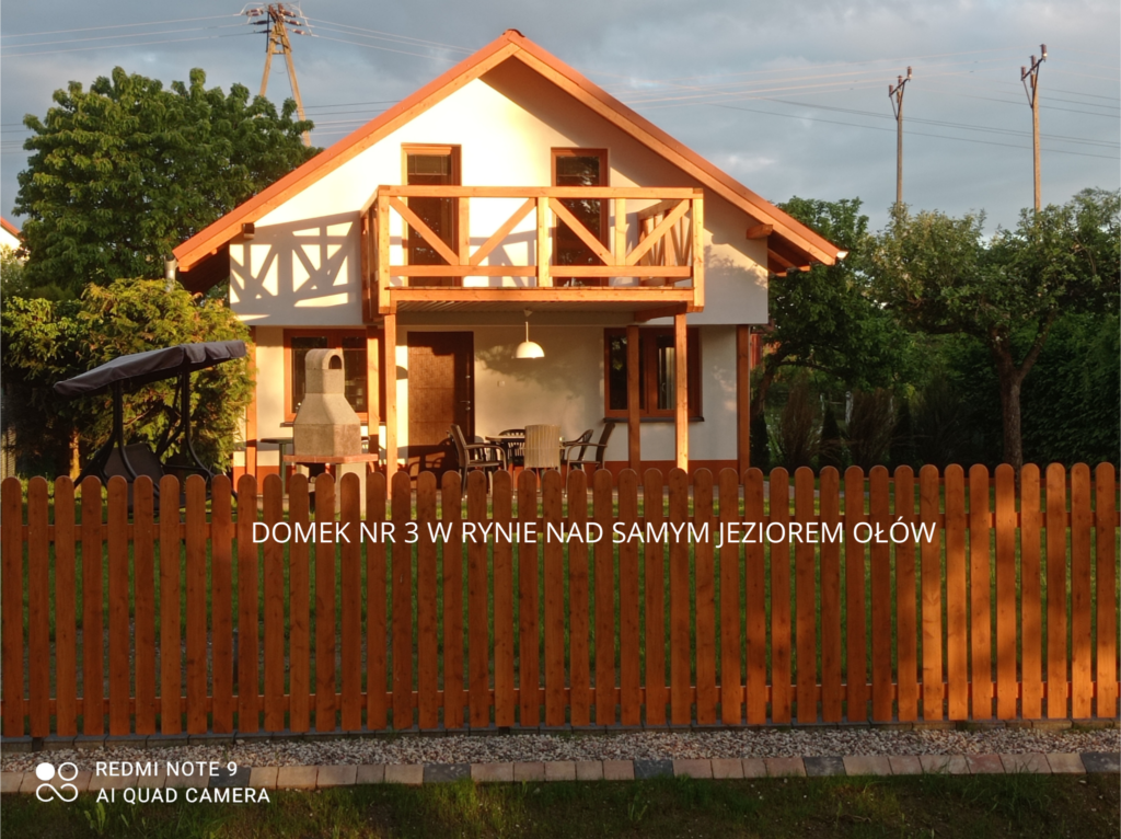 Dwupoziomowy ośmio osobowy domek letniskowy w turystycznej miejscowosci Ryn 25 metrów od jeziora Ołów . Domek położony jest on na ogrodzonej posesji na uboczu turystycznego miasteczka Ryn w cichym i spokojnym miejscu w odległości 18 km od Mikołajek, 20 km od Giżycka i Mrągowa, 24 km od Kętrzyna.