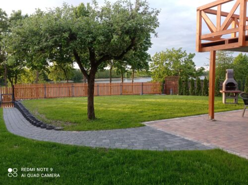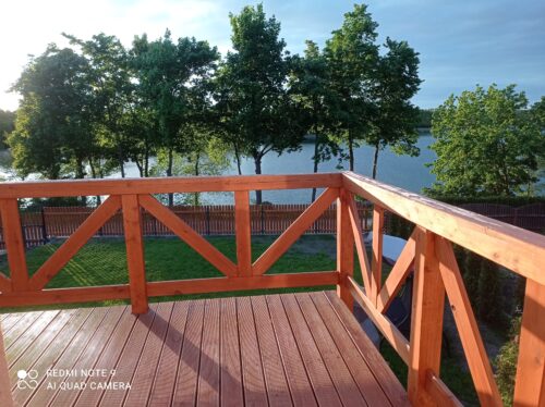 - Dwa tarasy wypoczynkowo widokowe na parterze i piętrze z widokiem na jezioro.